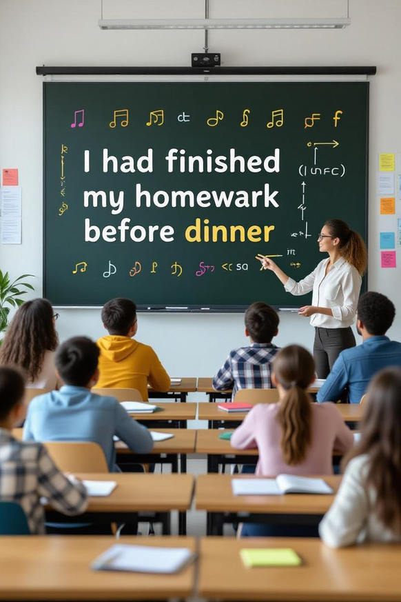 - Past Perfect: I had finished my homework before 8 PM. 📝